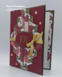 - Merry Bold & Bright Designer Series Paper 4 1/8″ X 5 3/8″ (card front), 2 1/8″ X 4 1/4″ (card front panel), 5/8″ X 4″ (inner liner strip), 2 1/4″ X 6″ (envelope flap)