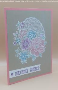 Today’s card one of my team members Mary Deatherage made on a Facebook live video on Saturday. I forgot how much I like this technique and haven’t done it in a while. Here’s my card for today.