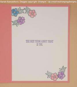 I used the Stampin’ Up! Calming Camellia Cling Stamp Set for my card today. You can earn this set free by hosting a qualifying party or placing a qualifying order. I’d be happy to set up a host code for you and your friends. Interested? Ask me how. Contact me at creativestampingdesigns@gmail.com.