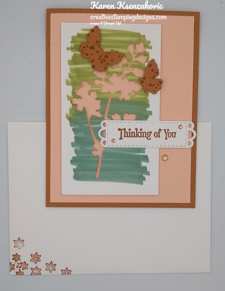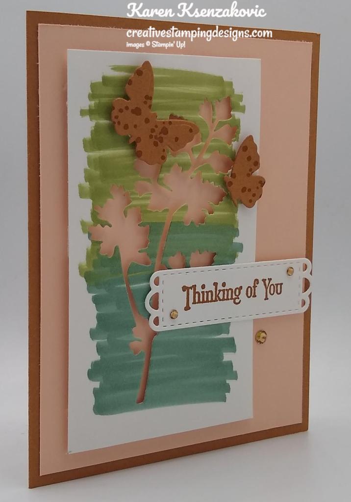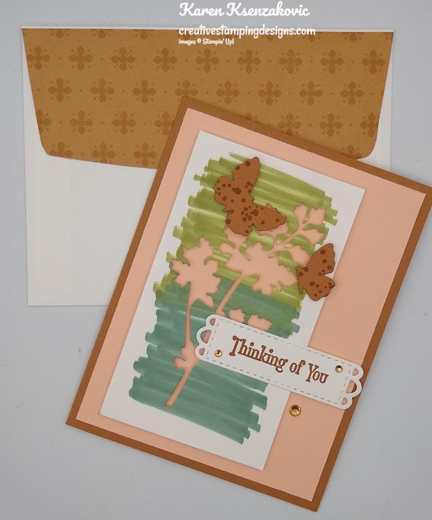 I used the Stampin’ Up! Butterfly Brilliance Cling Stamp Set along with the Stampin’ Up! Many Messages Cling Stamp Set and the 2020-2022 In-Color 6 X 6 Designer Series Paper for my card.