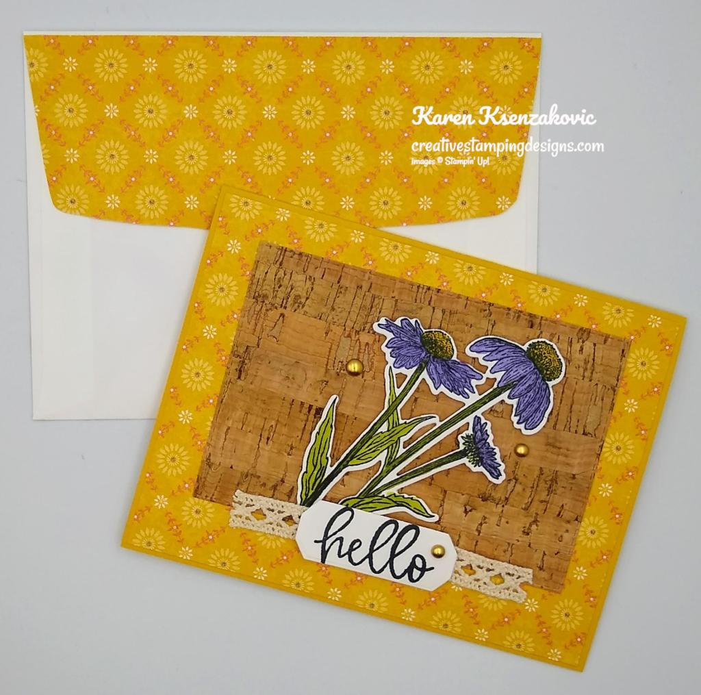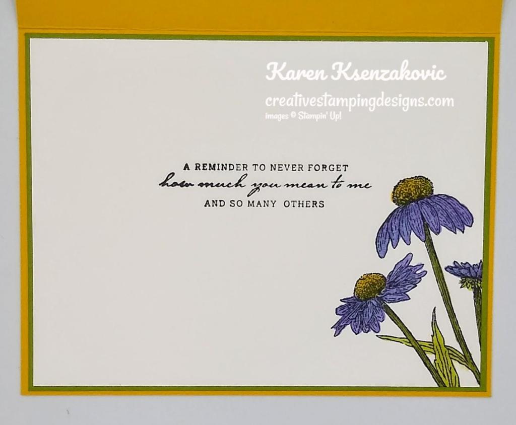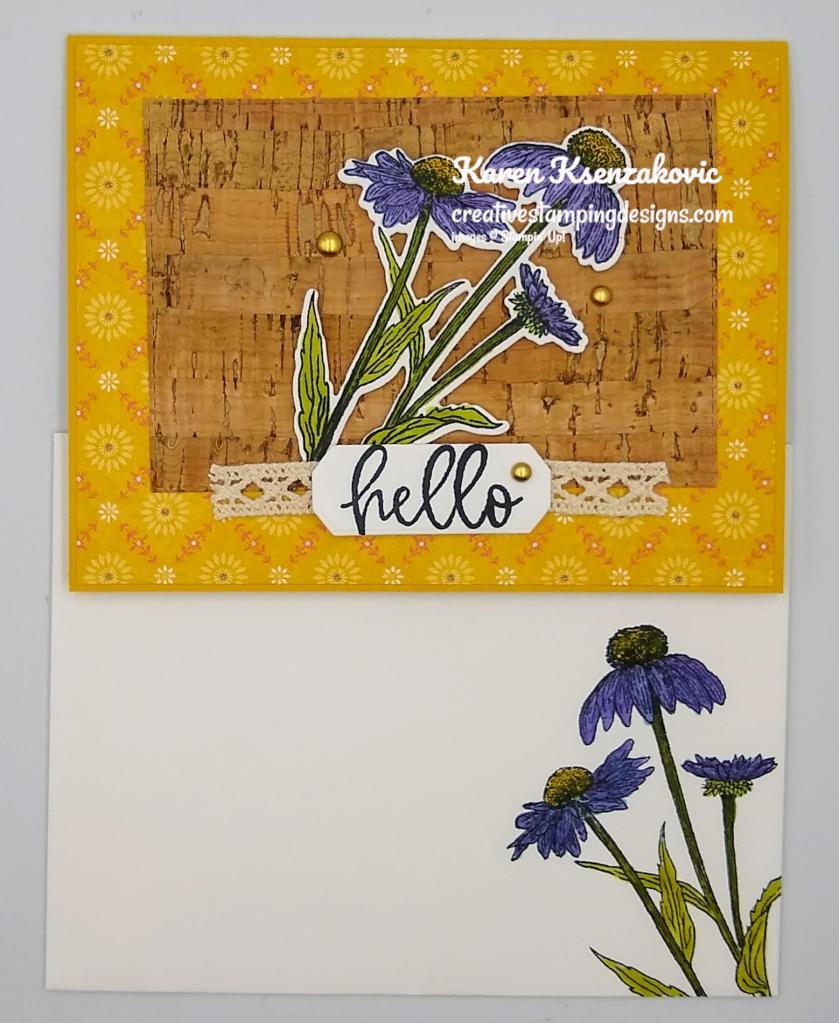 A couple weeks ago we had our monthly stamping studio. After the business part we did a little mystery stamping. It’s always so much fun to see how everyone’s card comes out. Here’s my card for today.