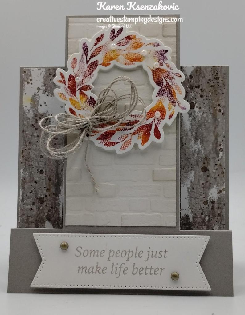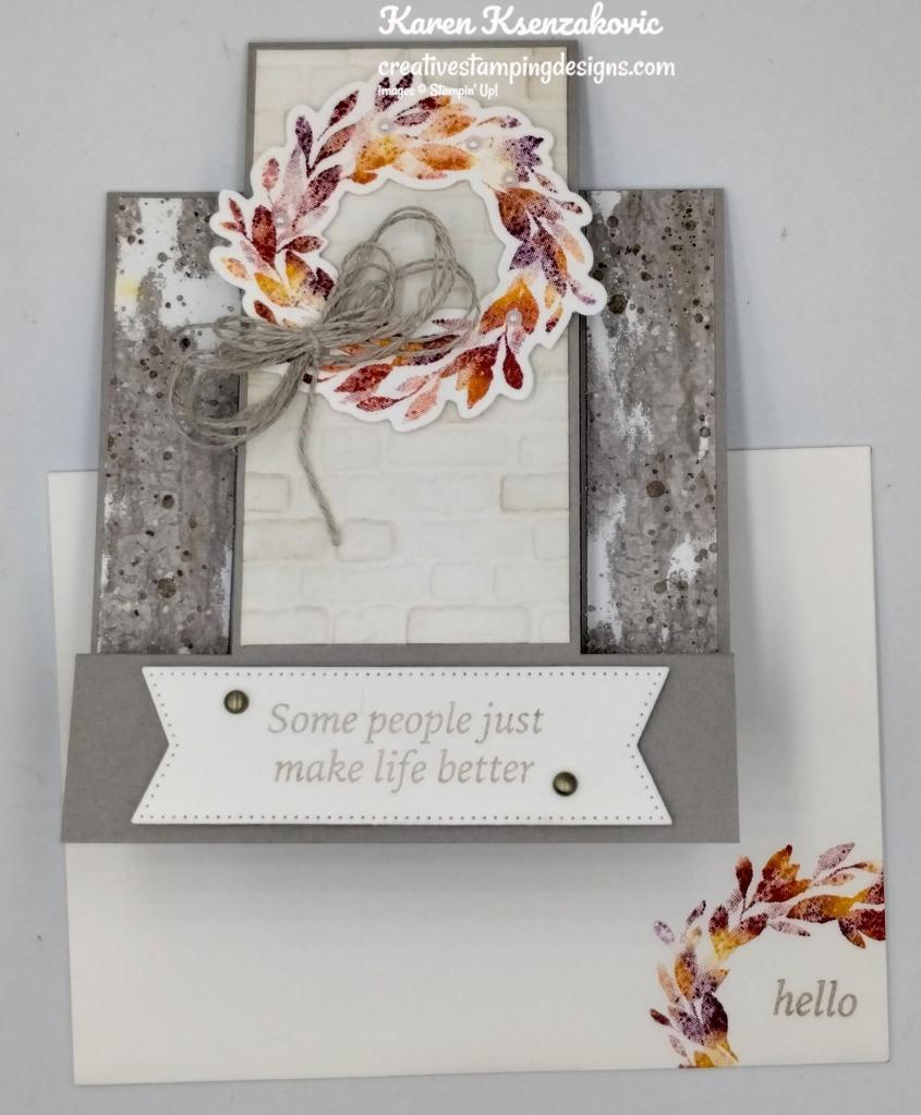 Today’s card is one that we made at our Stamp Camp Card Class this past week. I usually have my classes the 1st Tuesday of the month, but with being sick I had to postpone it. I’ve been wanting to make one of these cards and I thought this was the perfect opportunity to share with the ladies. Here’s my card for today.