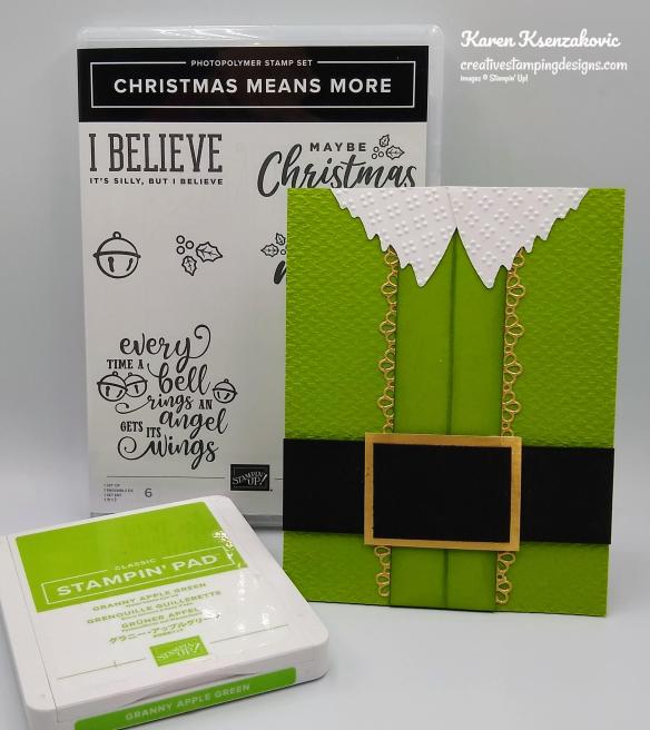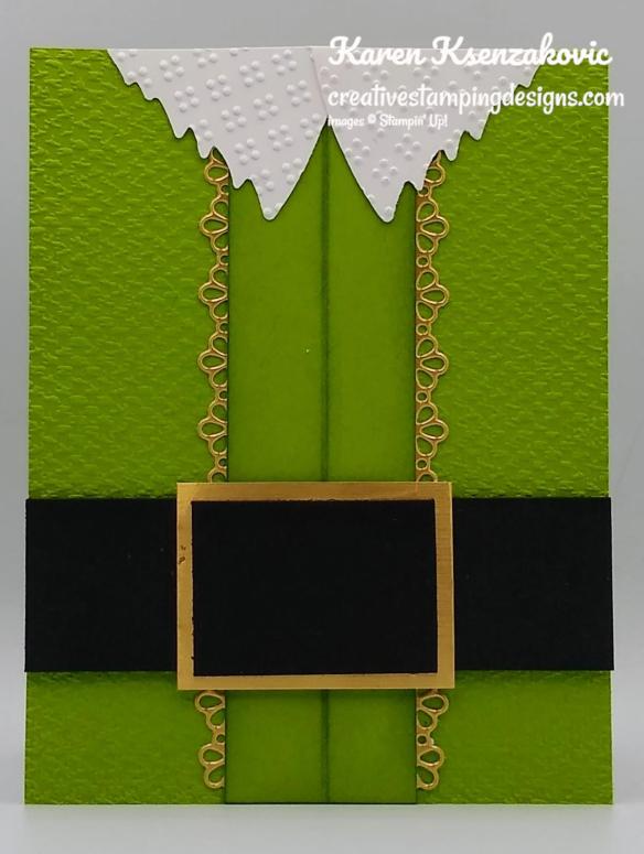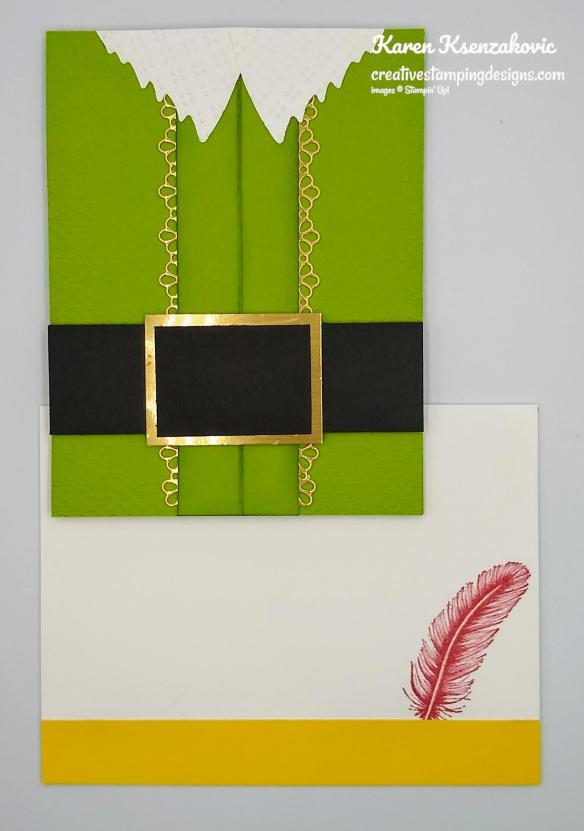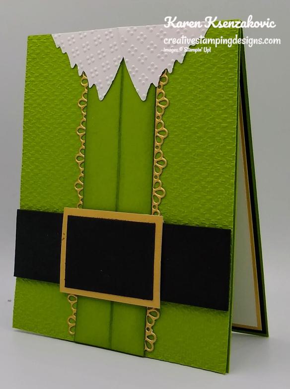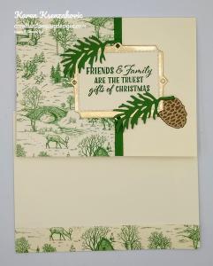 - Evening Evergreen Cardstock 4 1/4″ X 11″ (card base scored & folded at 5 1/2″), 4′ X 5 1/4″ (card front)