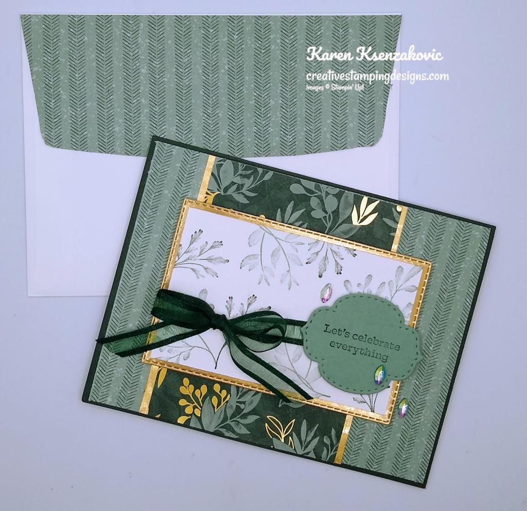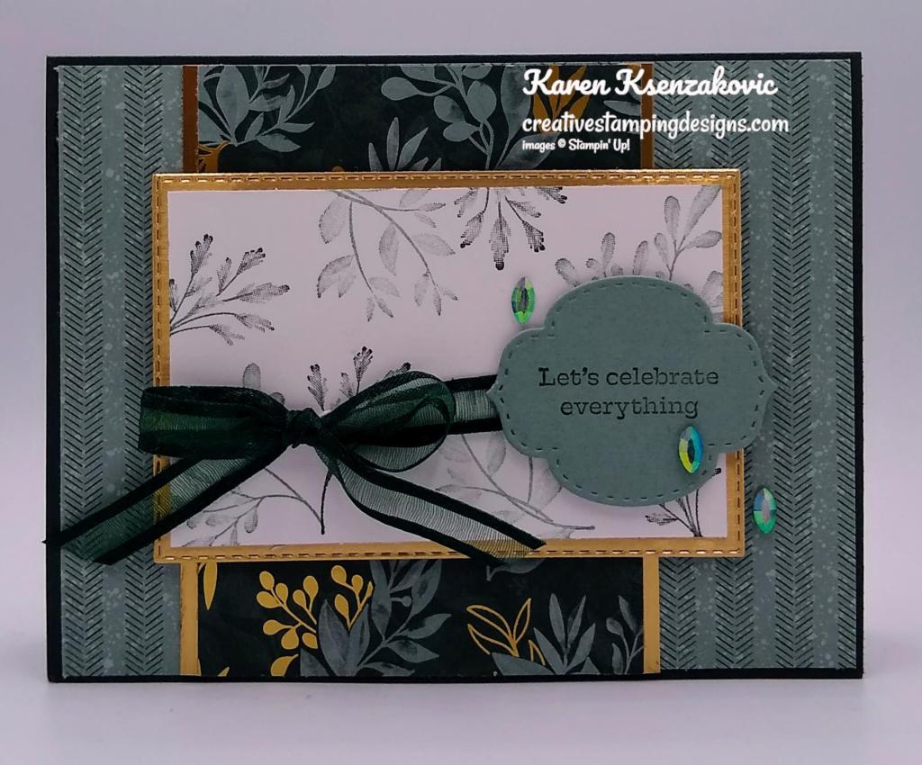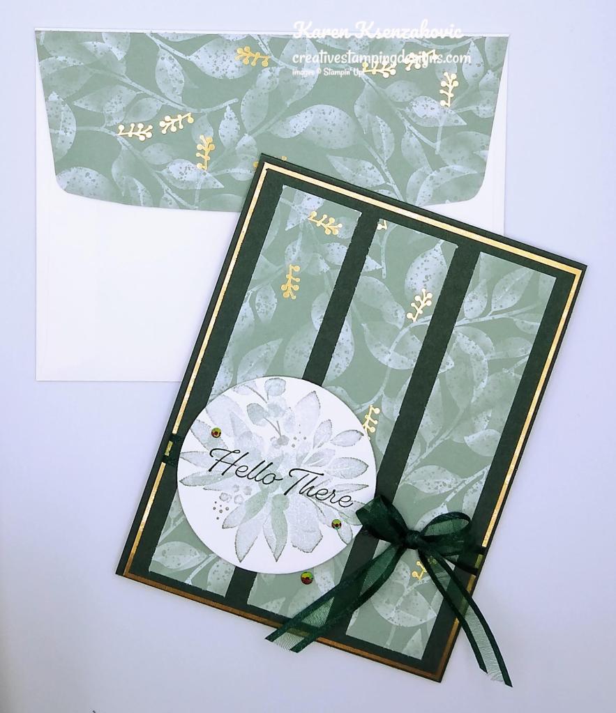 Today’s card features the gorgeous Ever Eden Specialty Designer Series Paper that will be going away on Monday January 3,2022, that’s in just 5 more days. You might want to grab a pack or 2 (or 3) if you haven’t gotten yours yet. Here’s my card for today.