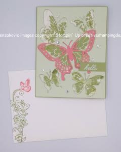 To complete my card I adhered a strip of Butterfly Bijou DSP to the envelope front and a panel to the envelope flap.
