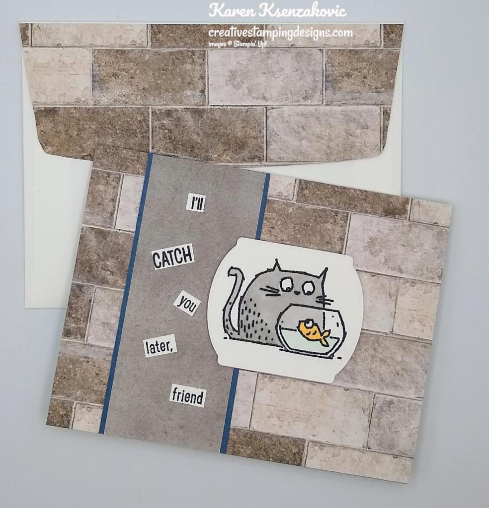 I used the Stampin’ Up! Catch You Later Cling Stamp Set along with the 2021-2023 In-Color Designer Series Paper, In the Wild Designer Series Paper, Playful Alphabet Dies and the Hippo & Friends Dies. All these items will be retiring, so if these are products you like grab them while you still can.