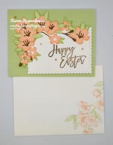 I stamped the center of the heart with the sentiment from the Forever Blossoms stamp set in Flirty Flamingo Ink. I arranged the leaf dies around the heart the way I wanted them using Multipurpose Liquid Glue. I arranged the larger flowers in a cluster on one side of the heart adhering some of them with Glue Dots and some with Stampin’ Dimensionals. I adhered a few small flowers on the wreath using Multipurpose Liquid Glue. I adhered the wreath to the card front using Stampin’ Dimensionals. I added a few Rhinestone Basic Jewels to the wreath.
