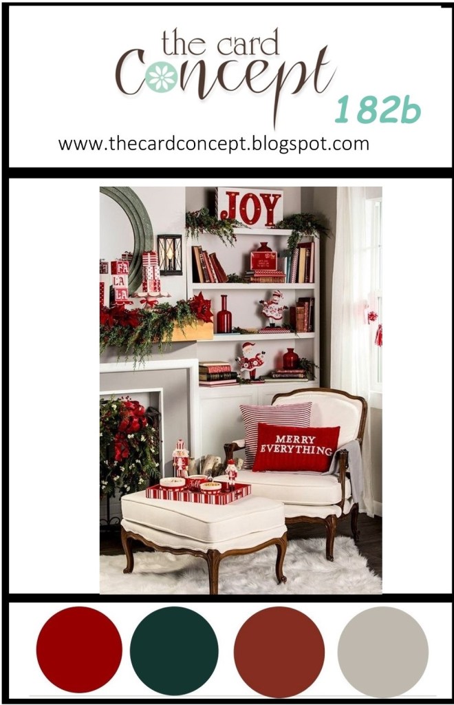 It’s time for an inspiration challenge from The Card Concepts. The inspiration photos are Harvest Bounty or Christmas Joy. You get to pick which photo you want to work with, 182a or 182b. Here is my card that was inspired from the challenge photo.