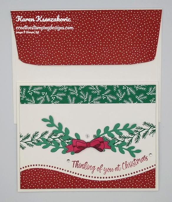- Classic Christmas 6 X 6 Designer Series Paper 3 3/4″ X 5 1/2″ (card front), 2 1/4″ X 6″ (piece for envelope flap)