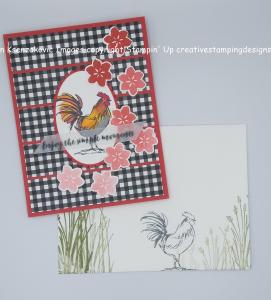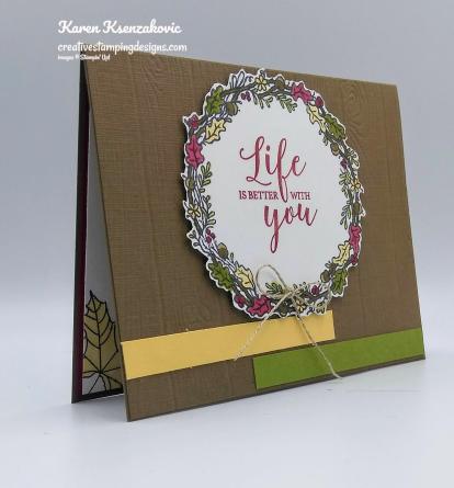 I have another card from our card class last night that we made. The ladies were busy making all the cards. It was another fun night stamping with friends. Here’s my card.