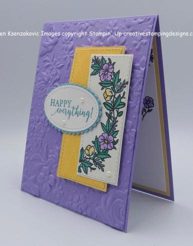 - Purple Posy Cardstock 8 1/2″ X 5 1/2″ (card base scored and folded at 4 1/4″), 4 1/8″ X 5 3/8″ (card front)