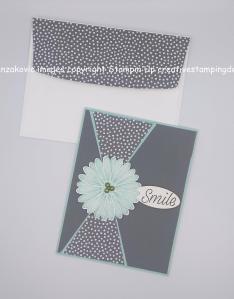 To finish my card I decorated a Basic White Medium Envelope. I stamped the small sunflower image from the Celebrate Sunflowers stamp set in Tuxedo Black Ink on the bottom front of the envelope and colored it in the same as I did for the card. I adhered a panel of Bloom Where You’re Planted DSP to the envelope flap.