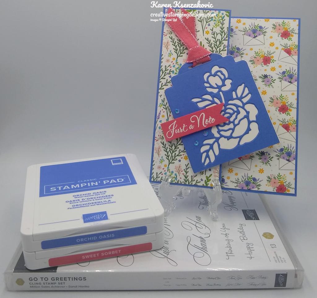 Today’s card I made on YouTube Live on Wednesday and it’s a sneak peek of some new product coming in the 2024-2025 Annual Catalog. If you were able to join me or watched the replay, thank you. If you’d like to watch my video and stamp along, the measurements are below, just above the supply list, along with the link to my YouTube channel. Here’s my card for today.