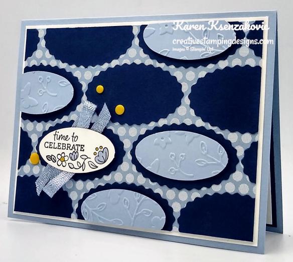 I used the Stampin’ Up! Sale-a-bration Softly Sophisticated Bundle along with the Double Oval Punch for my card today. This bundle is one that you can earn for free with a qualifying order of $100.