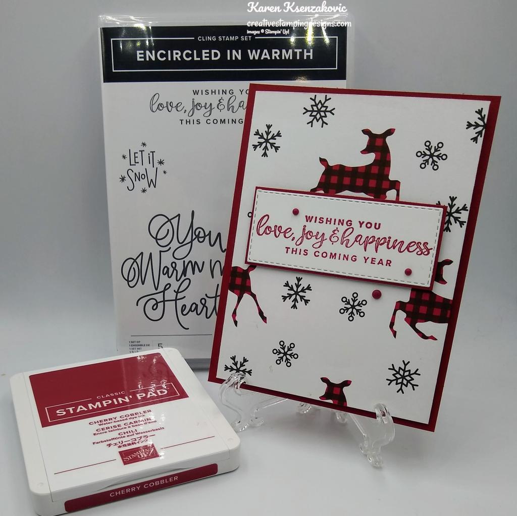 I used the Stampin’ Up! Holly Jolly Wishes Cling Stamp Set along with the Eden Dies (available 11-2-21) and the Ever Eden Specialty Designer Series Paper (available 11-2-21) for my card today.