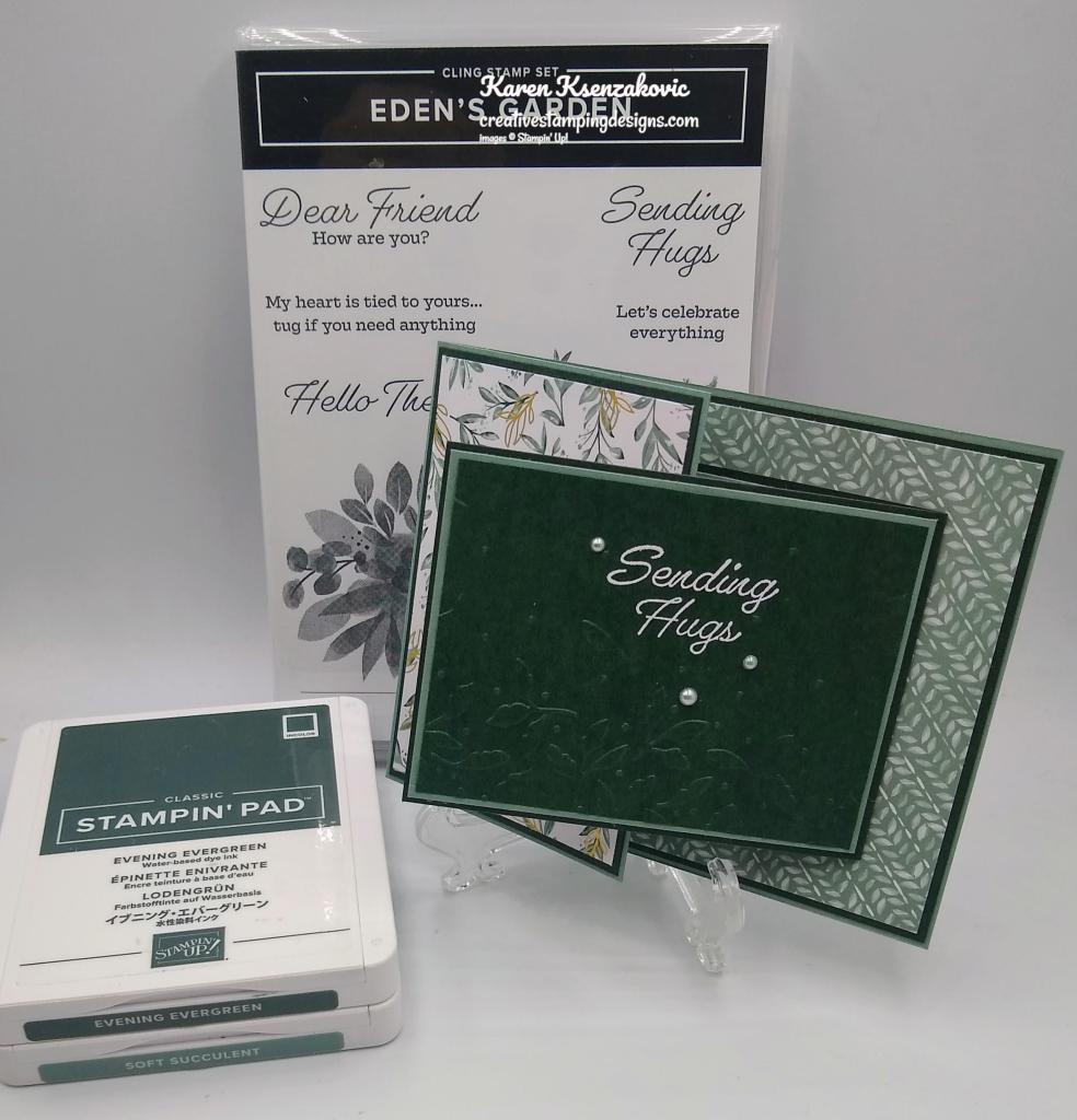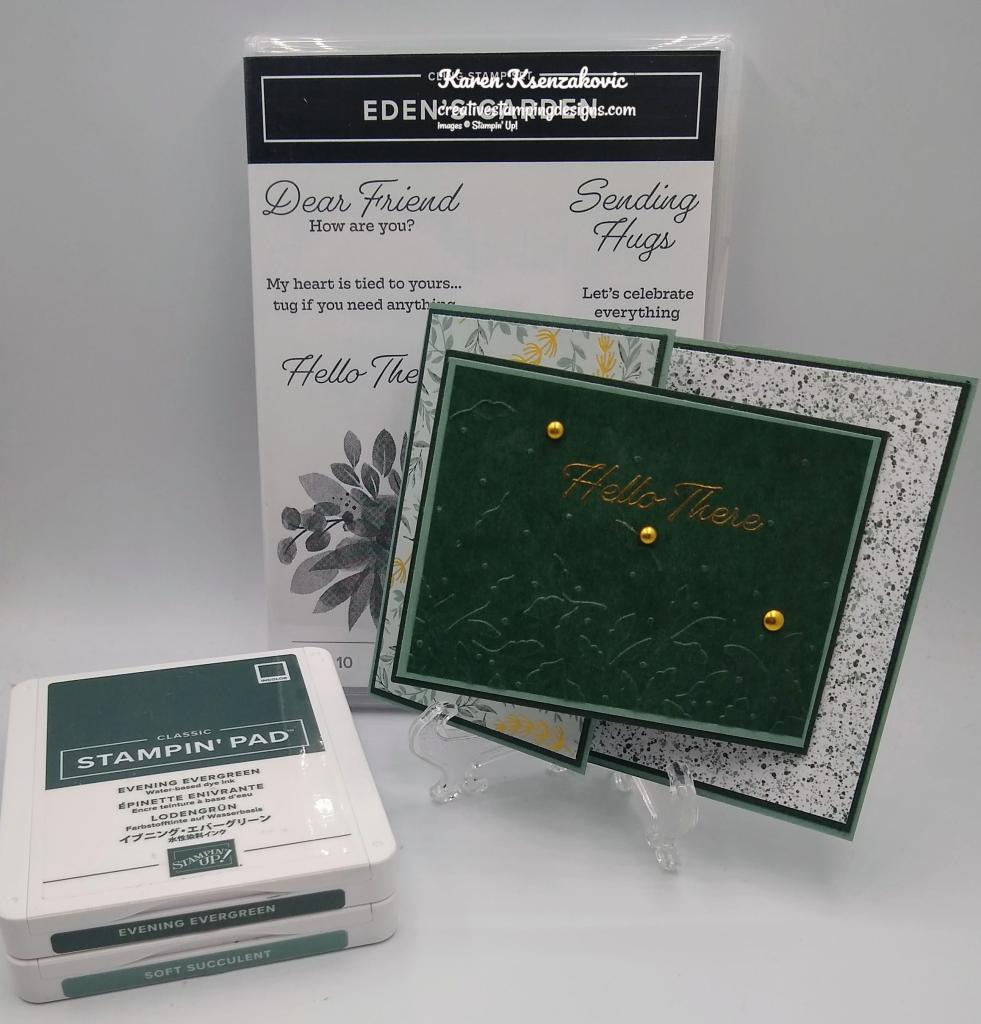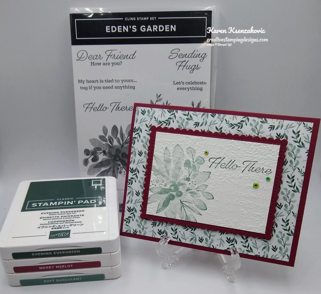 I used the Stampin’ Up! Eden’s Garden Cling Stamp Set along with the Ever Eden DSP for my card today.