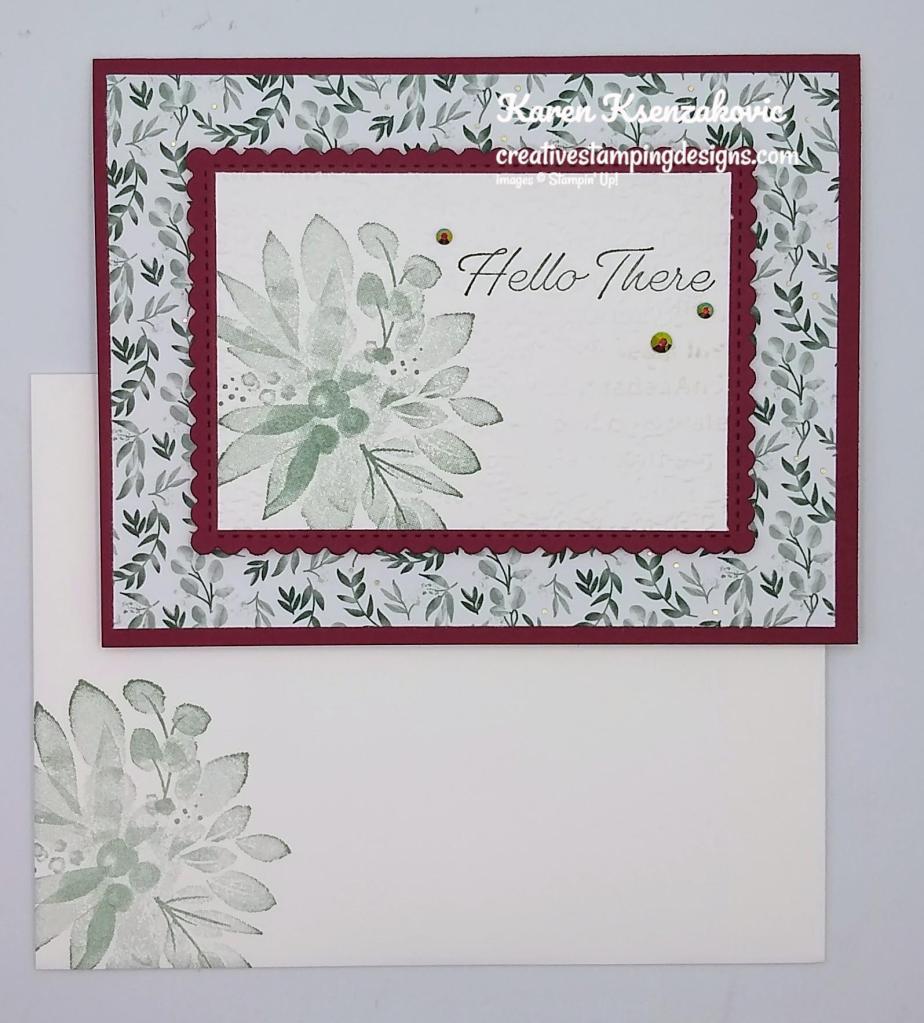 Today’s card features the gorgeous Ever Eden Specialty Designer Series Paper that will be going away on Monday January 3,2022, that’s in just 5 more days. You might want to grab a pack or 2 (or 3) if you haven’t gotten yours yet. Here’s my card for today.