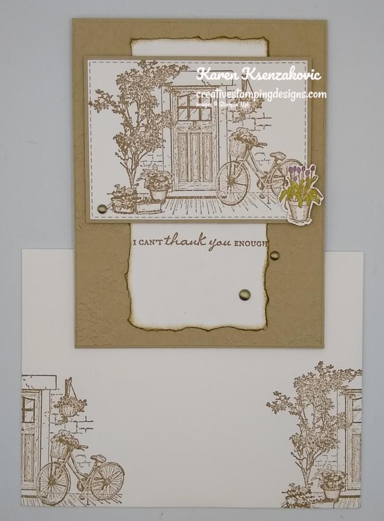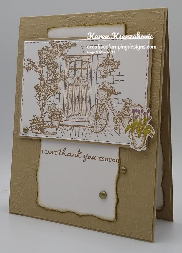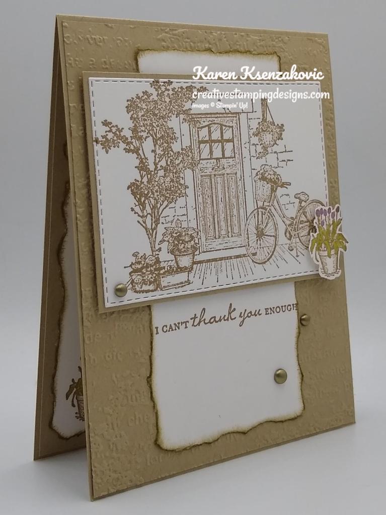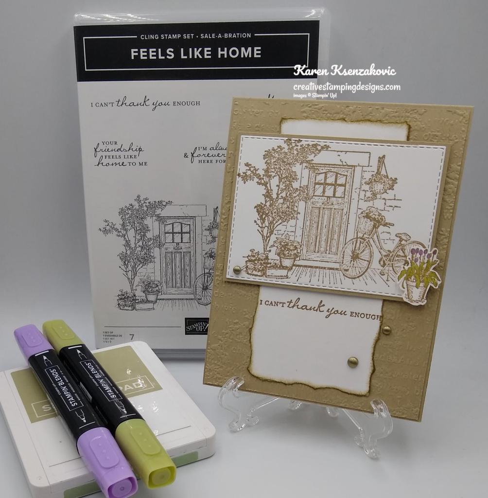 I used the Stampin’ Up! Feels Like Home Sale-a-bration Cling Stamp Set along with the Beautifully Penned Sale-a-bration Designer Series Paper for my card today.