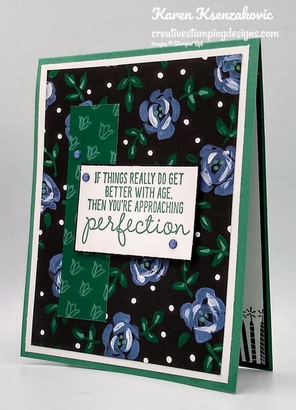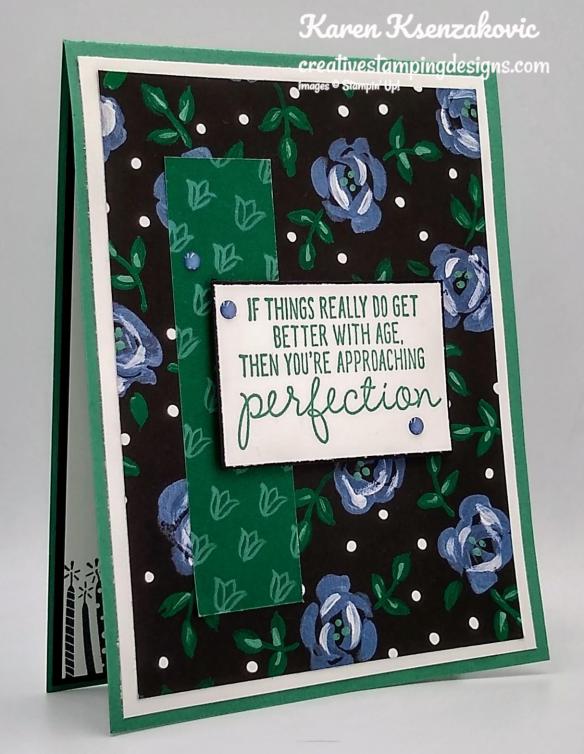 I used the Sale-A-Bration Stampin’ Up! Darling Donkey Cling Stamp Set for my card along with the Flower & Field Designer Series Paper to make a drapery fold for you. With this DSP the flowers matched up perfectly for me with the folds. Here is our theme for this week.
