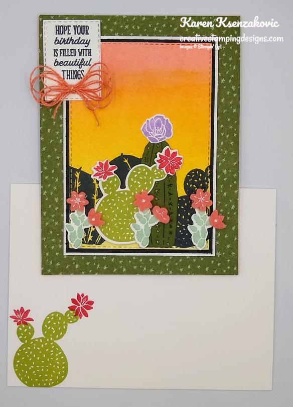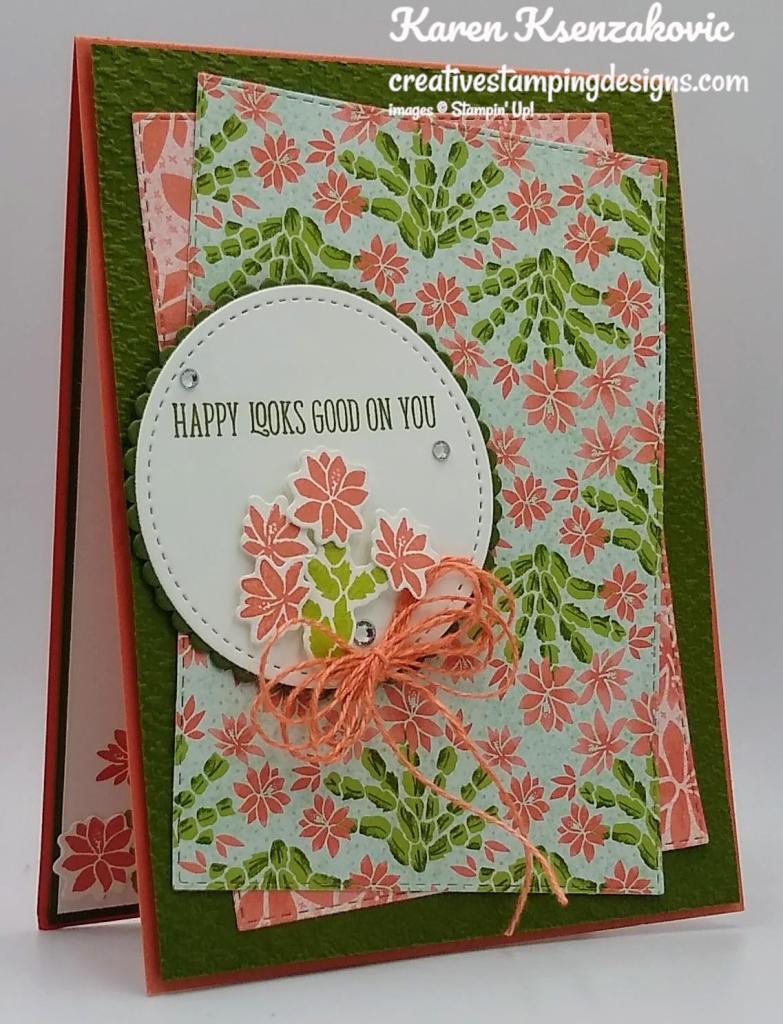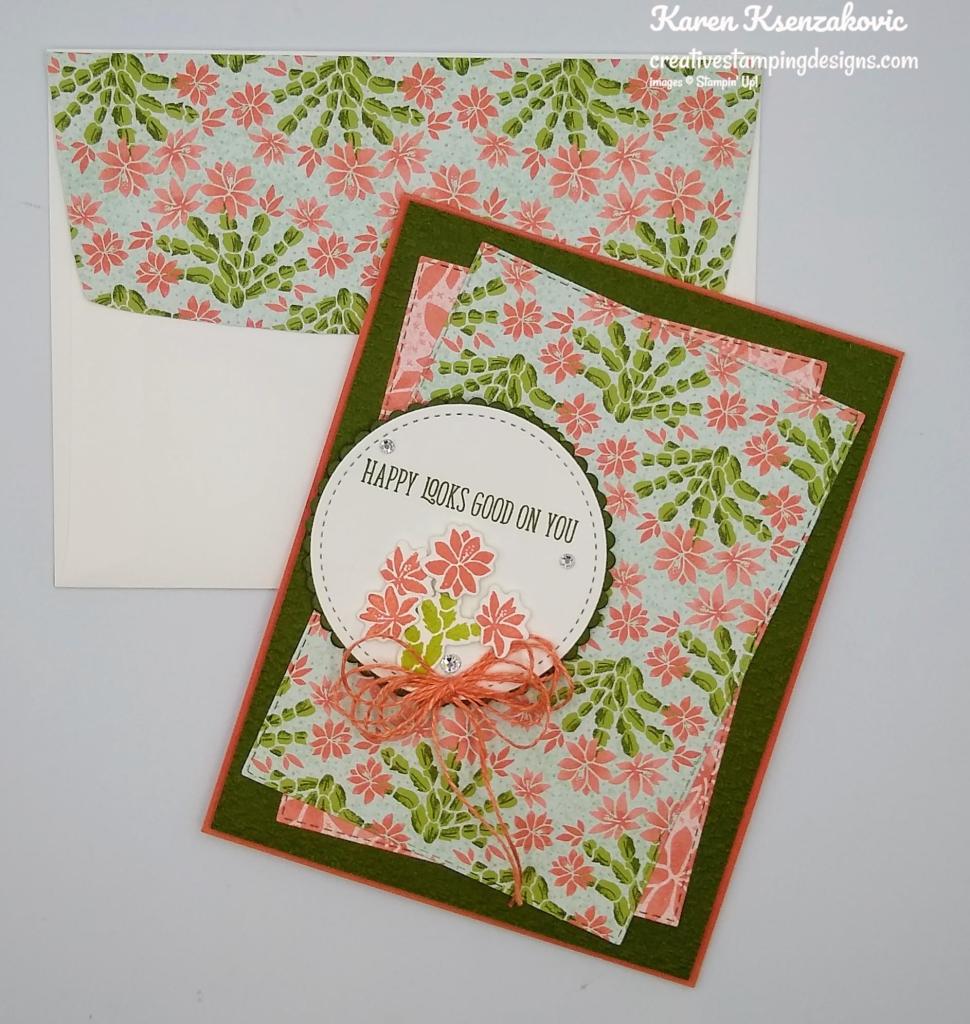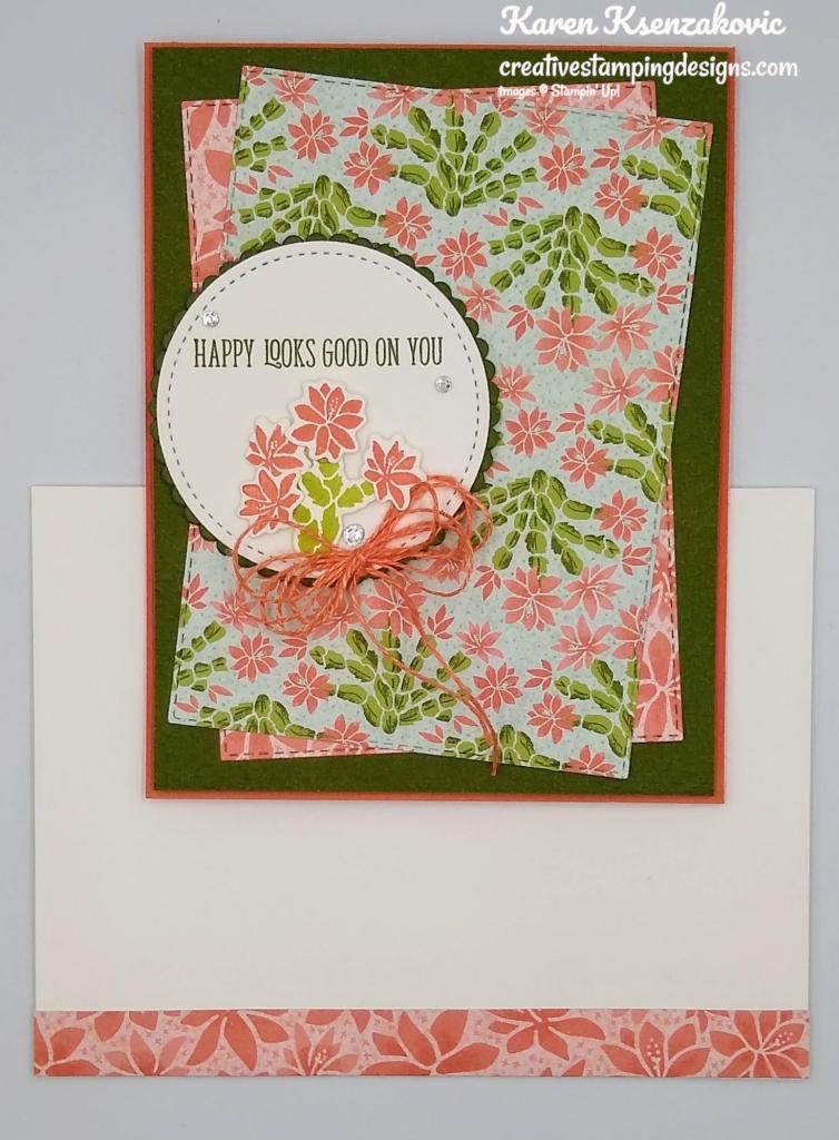 I used the Stampin’ Up! Flowering Cactus Product Medley for my card. This is such a great group of products, I’m going to be sorry to see it retire.