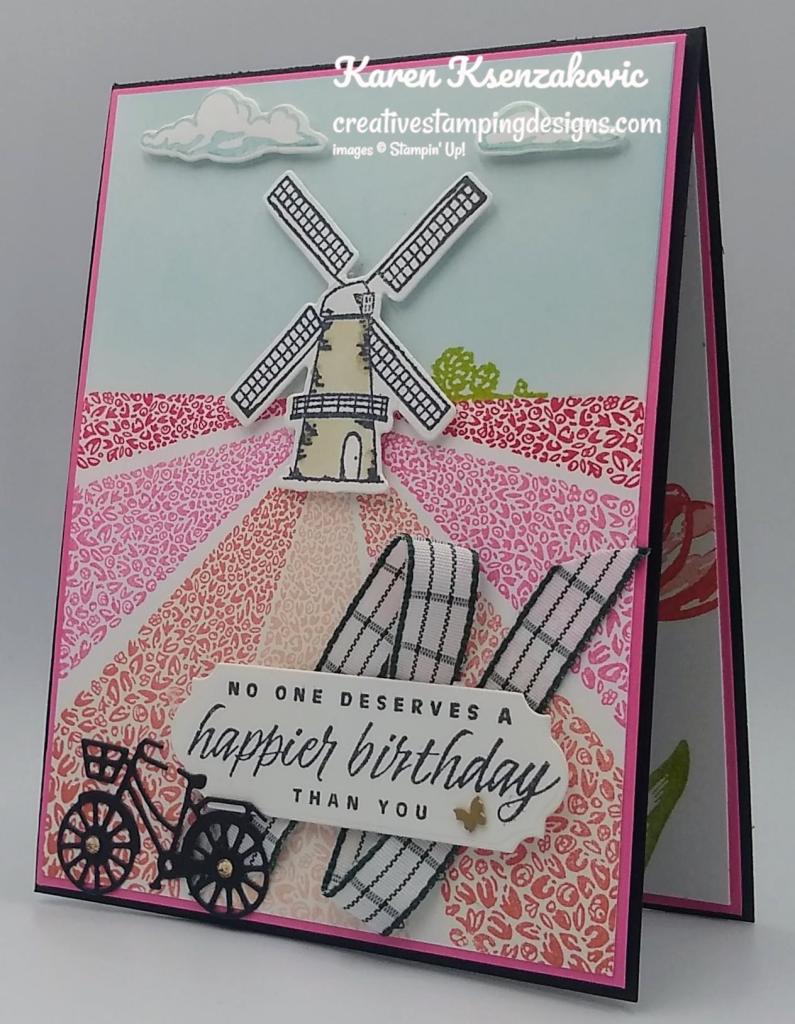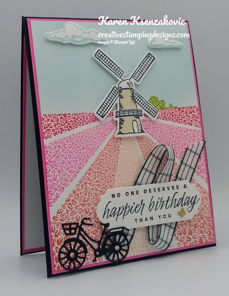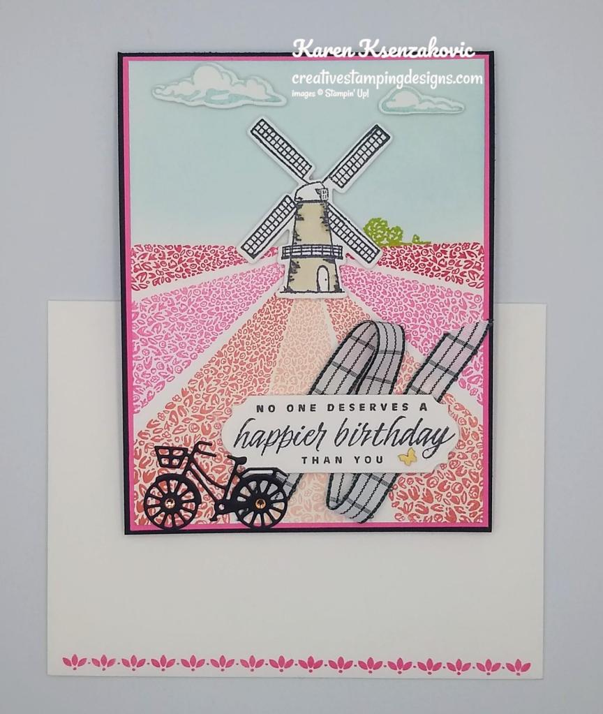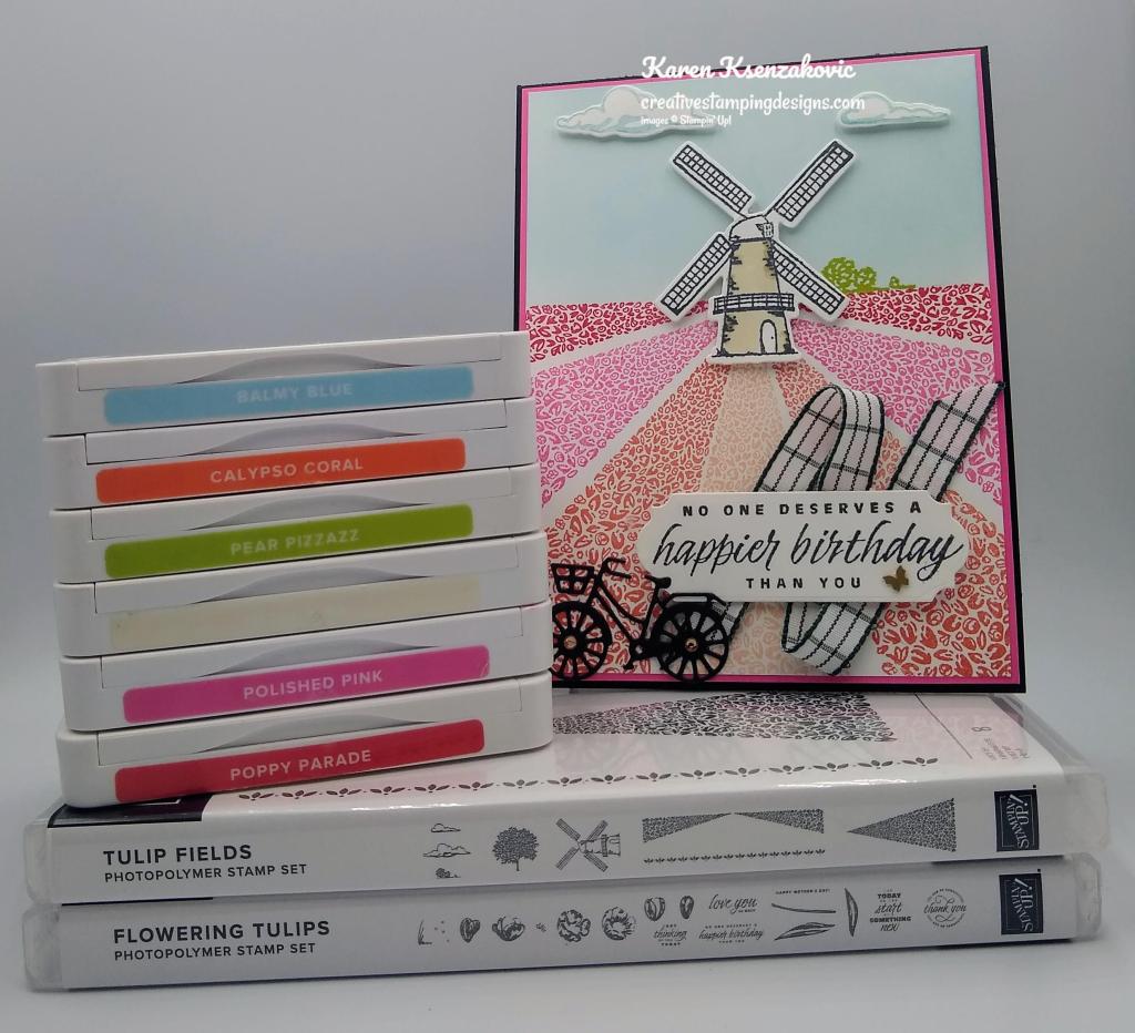 I used the Stampin’ Up! Flowering Tulips Photopolymer Stamp Set and the Abigail Rose Designer Series Paper for my card today.