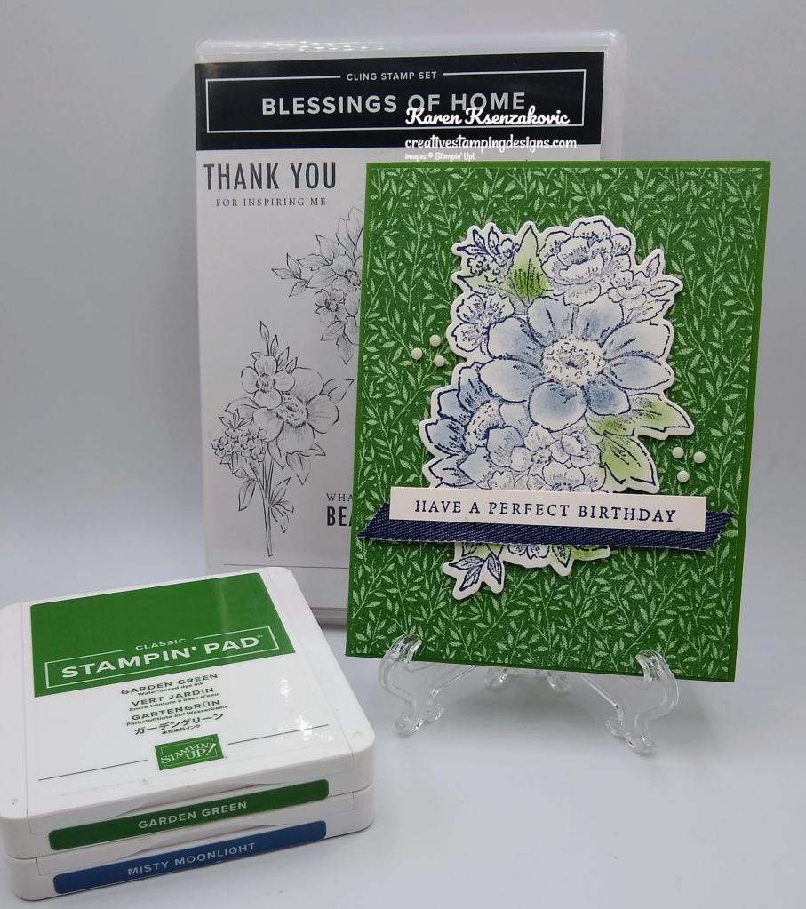 I used the Stampin’ Up! Blessings of Home Cling Stamp Set and the Subtle 6 X 6 Designer Series Paper for my card today.