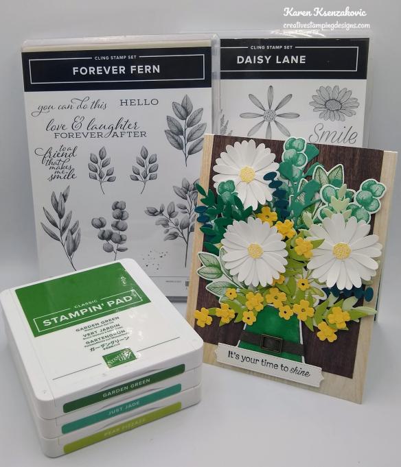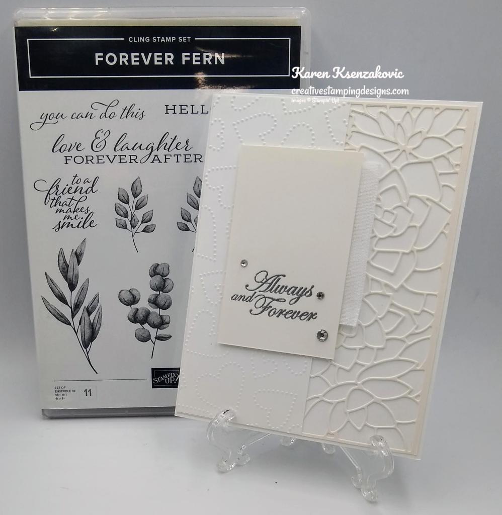 I used the Stampin’ Up! Forever Fern Cling Stamp Set for my Triple Time card today.