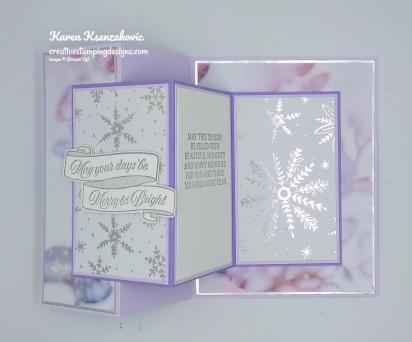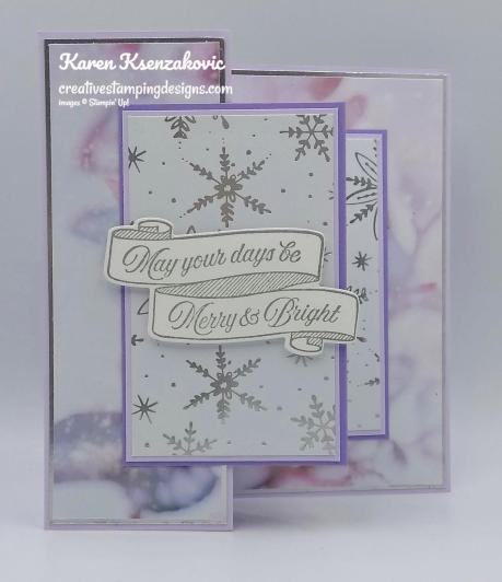 - Feels Like Frost Specialty Designer Series Paper 1 7/8″ X 5 1/4″ (large card front), 4″ X 5 1/4″ (large inside card base), 2 – 2 1/4″ X 3 3/4″ (small card front and inside)