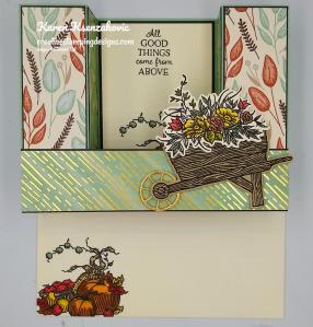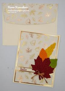 - Gilded Autumn Specialty Designer Series Paper 4 1/8′ X 5 3/8″ (card front), 4 1/2″ x 3 1/4″ (card front panel), 2 1/4′ X 6′ (piece for envelope flap)