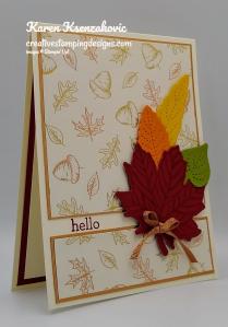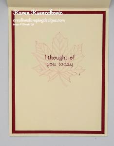 - Cherry Cobbler Cardstock 2″ X 2″ (leaf), 4 1/8″ X 5 3/8″ (inner liner mat)