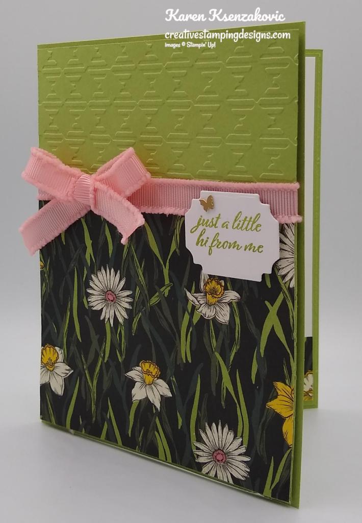 Today’s card is one that I on World Card Making Day last Saturday. This is one of the designs from Stampin’ Up!’s event and I added my own little twist. Here’s my card for today.