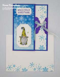 I used the Stampin’ Up! Gnome For The Holidays Cling Stamp Set for today’s card. Can you tell this is my favorite set in the catalog? My design is from TGIF Challenge #290. Here is their sketch.