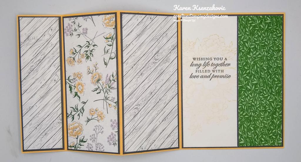 I started by adhering a panel of the Heart & Home DSP to a Basic Gray card base.