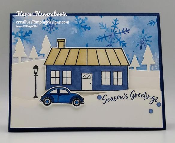 I thought I was done making my Christmas cards and my husband asked me to make a card for his department to give their supervisor. Today’s card I made on my Facebook Live video on Wednesday. If you were able to join me or watched the replay, thank you very much. If you’d like to watch my video and stamp along, the measurements are below along with the links to my Facebook page and my YouTube channel. Here’s my card that I made. I used a few stamp set for my card, but the main set I used was the Stampin’ Up! Warm & Toasty Cling Stamp Set.