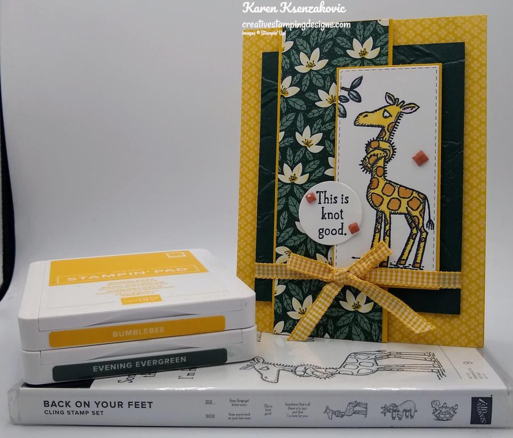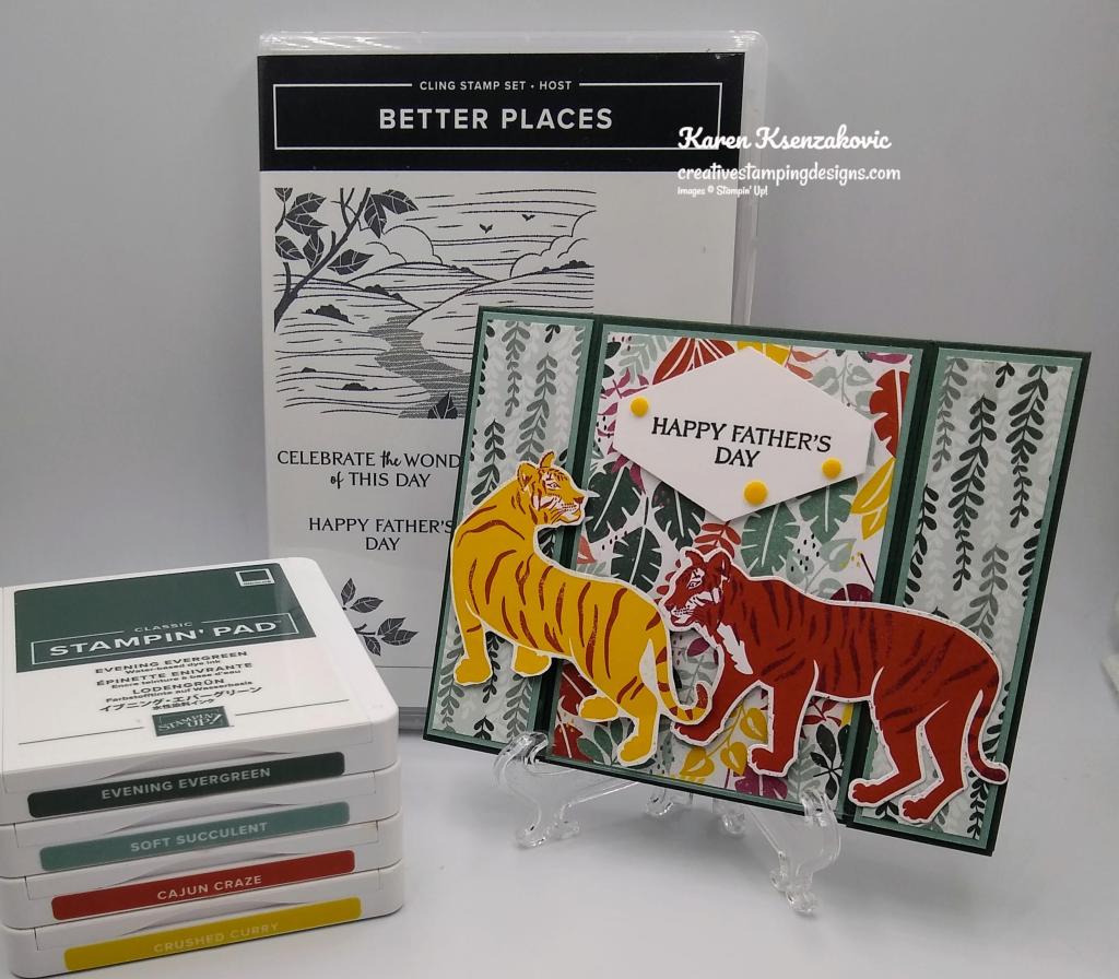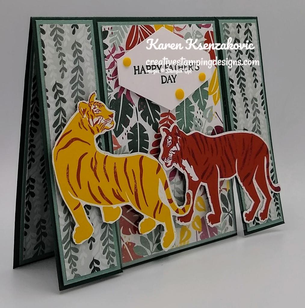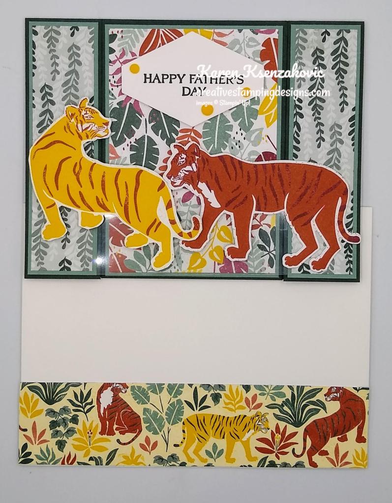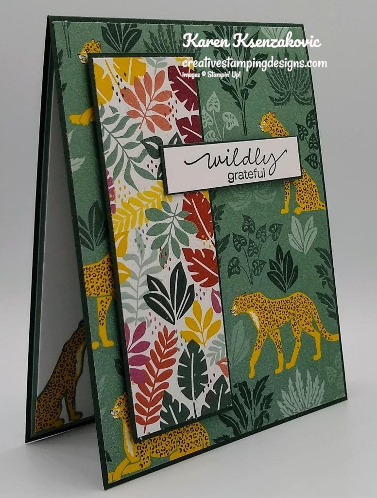 I used the Stampin’ Up! Catch You Later Cling Stamp Set along with the 2021-2023 In-Color Designer Series Paper, In the Wild Designer Series Paper, Playful Alphabet Dies and the Hippo & Friends Dies. All these items will be retiring, so if these are products you like grab them while you still can.