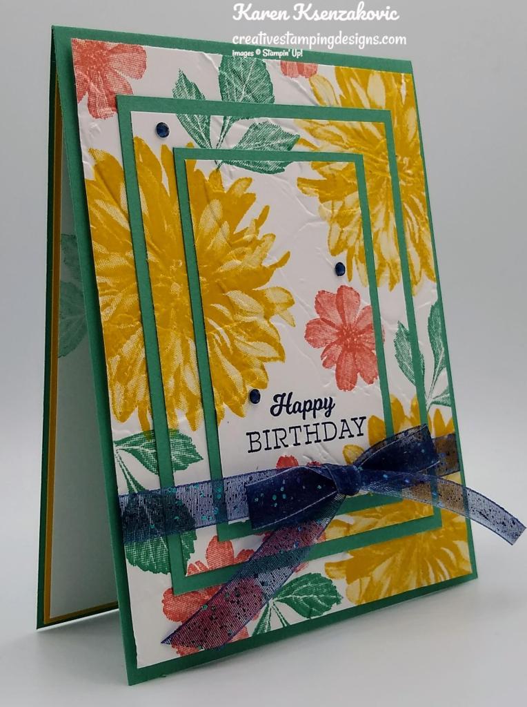 I used the Stampin’ Up! Nature’s Harvest Bundle along with the Harvest Meadow Designer Series Paper for my card today.