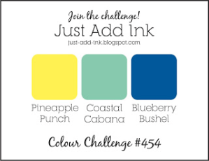 See how the sentiment peeks through the window. I joined in with Just Add Ink color challenge #454. I have to admit I am not a huge fan of yellows, but once I put it on the card, I really liked it Here are their colors.