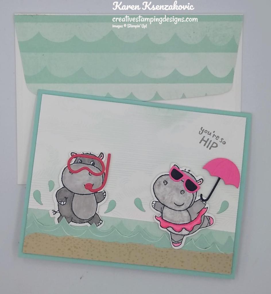 - Pool Party Cardstock 4 1/4″ X 11″ (card base scored & folded at 5 1/2″)