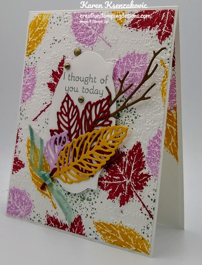 Good Sunday morning my stamping friends. How is everyone’s weekend going? I’ve got the day off today and it looks like it’s going to be a beautiful fall day. Unfortunately my husband is sick and my daughter is going to work, so I’ll just have to stay in and make some cards. I may run a couple errands just to get out for a bit.
