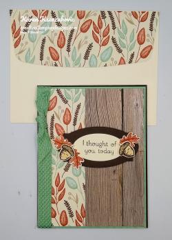 - Very Vanilla Cardstock 5″ X 3″ (sentiment, leaves and acorns), 4″ X 5 1/4″ (inner liner)