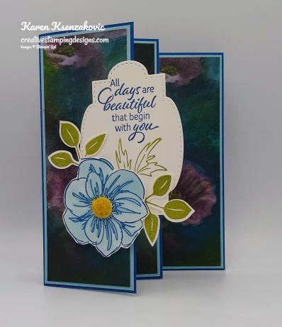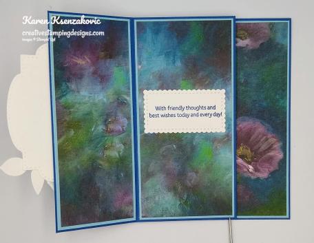 - Perennial Essence Designer Series Paper 2 – 2″ X 5 1/4″ (front and inside left panel), 2 1/2″ X 5 1/4″ (inside right panel), 4′ X 5 1/4″ (inside back panel)