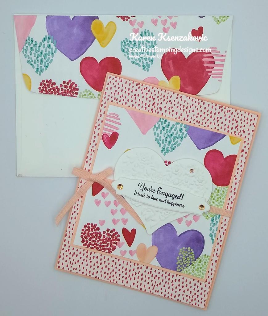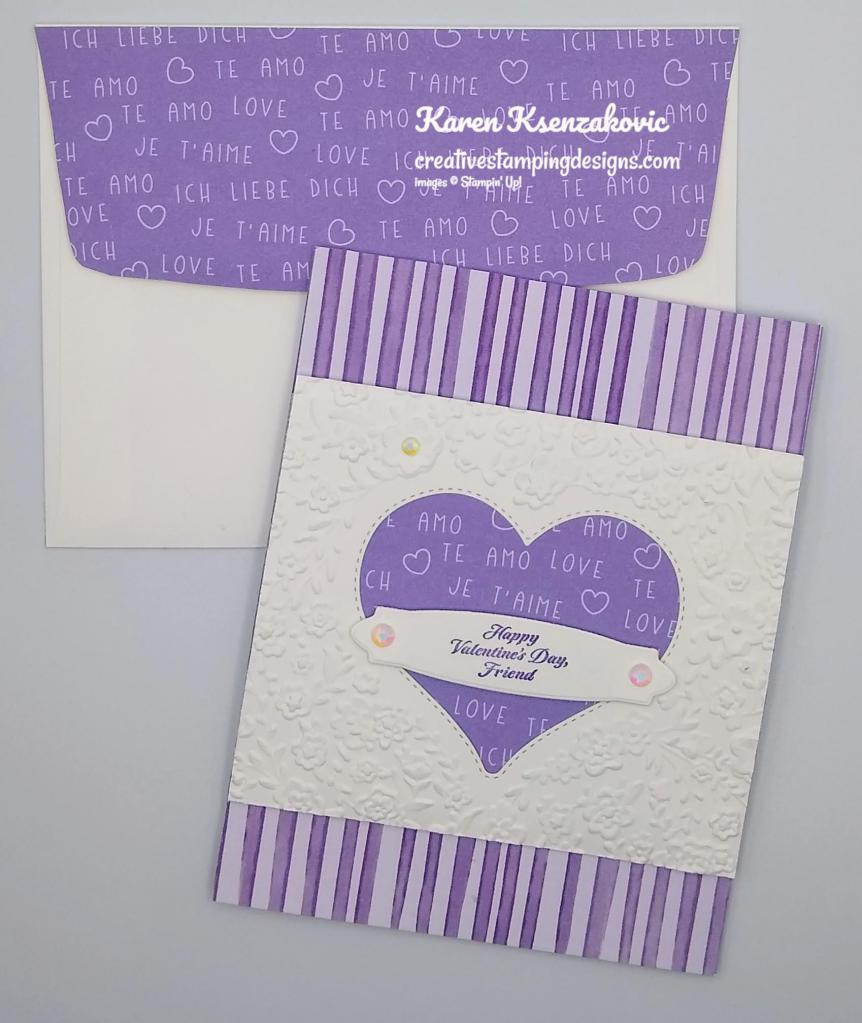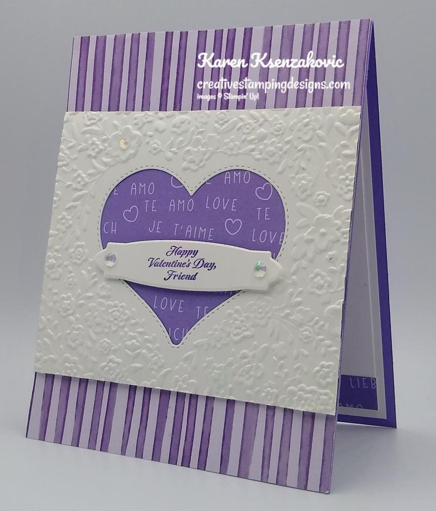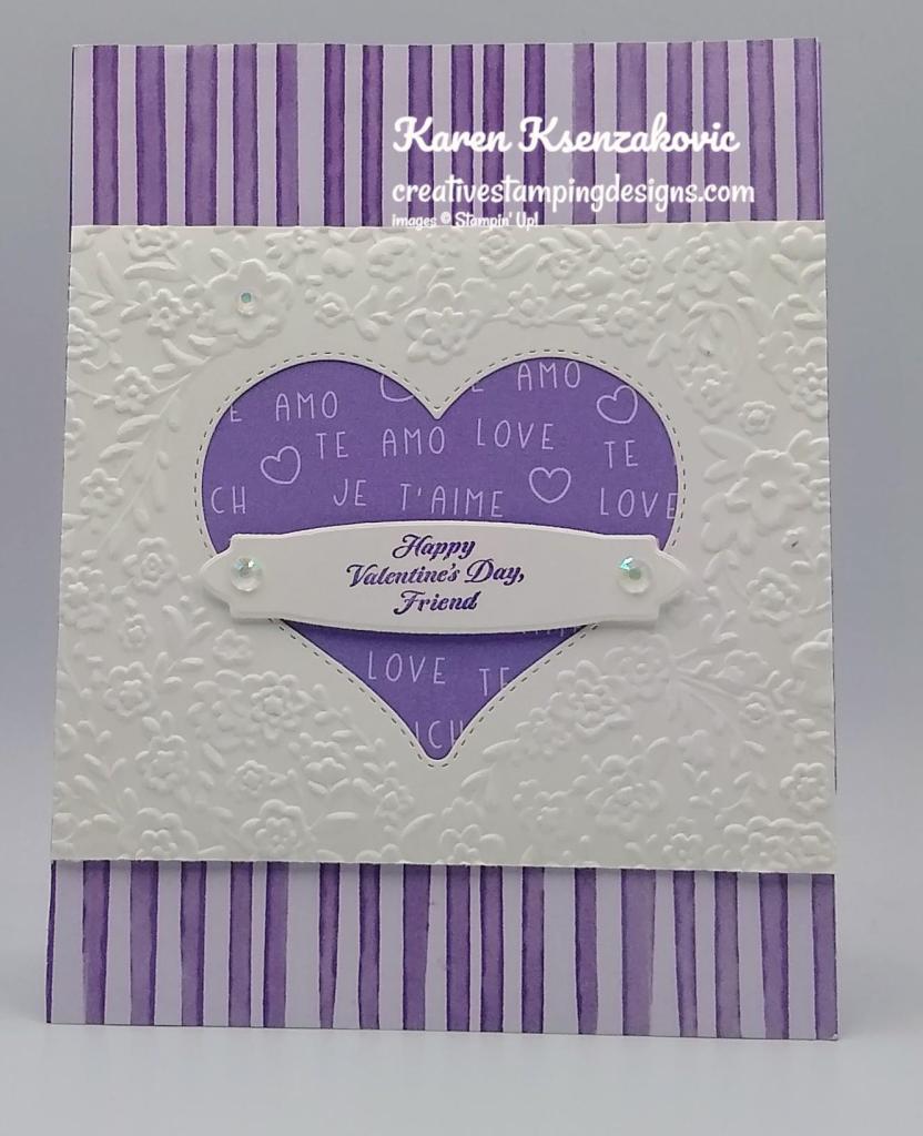 I used the Stampin’ Up! Forever Blossoms Cling Stamp Set for my clean and layered card. I was inspired by the Heart Wreath and Colors from the photo.