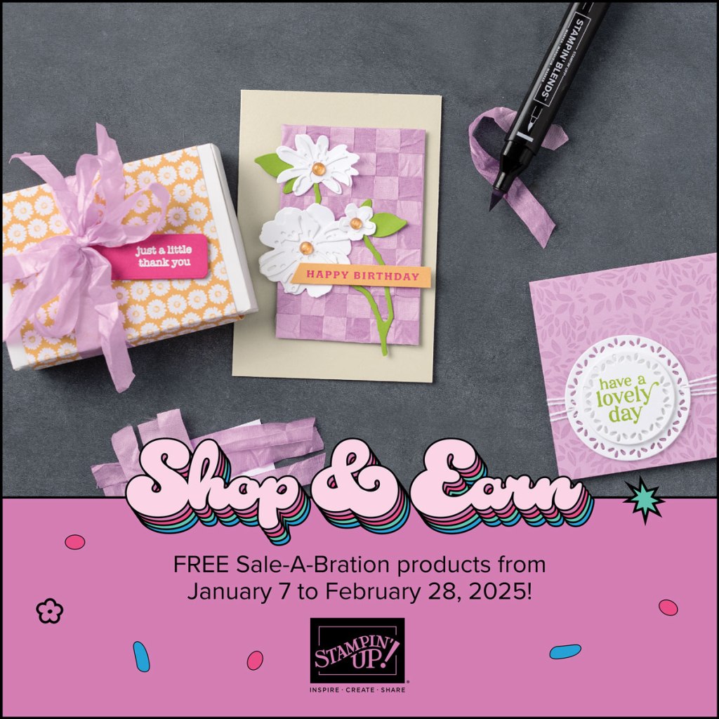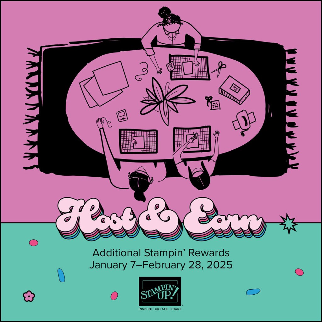 Use this host code when placing an order with me. When you order $50 or greater you will receive a free gift from me! If your order is over $150, please do not use this code, but you’ll still get the free gift. The free gift is your choice of any 1 item valued up to $10.00 from the 2024 – 2025 Annual Catalog, January – April 2025 Mini Catalog or from the Online Exclusives! For any orders $50 or more I will also send you my monthly class tutorials. Click HERE or go to my Customer Rewards for more details and to see what this month’s tutorials are.