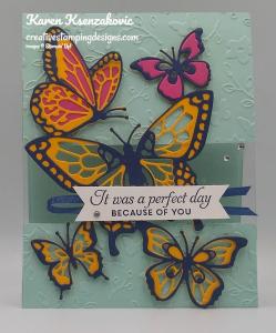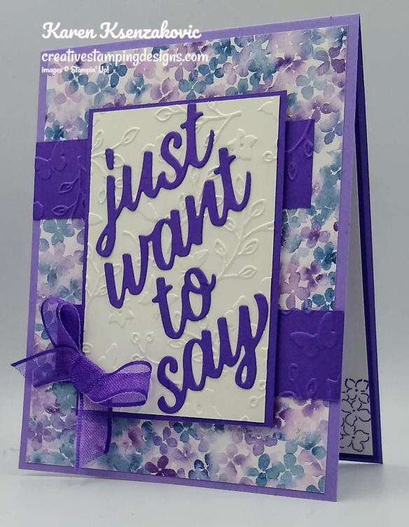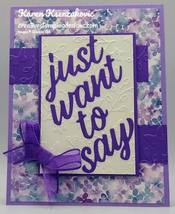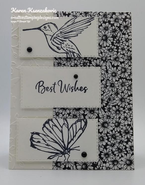I used the Stampin’ Up! Butterfly Brilliance Cling Stamp Set along with the Stampin’ Up! Many Messages Cling Stamp Set and the 2020-2022 In-Color 6 X 6 Designer Series Paper for my card.