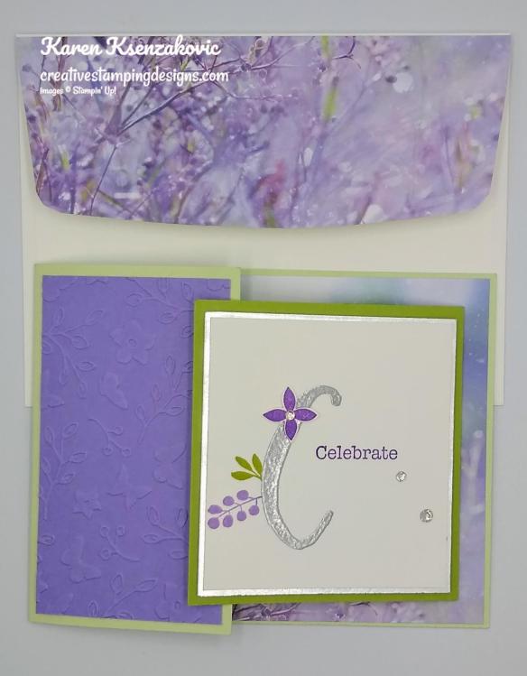 To finish my card, I decorated a Basic White Medium Envelope. I stamped the large butterfly from the Butterfly Brilliance stamp set in Bumblebee Ink on the envelope front. I adhered a panel of the Misty Moonlight 2020-2022 In-Color DSP to the envelope flap.