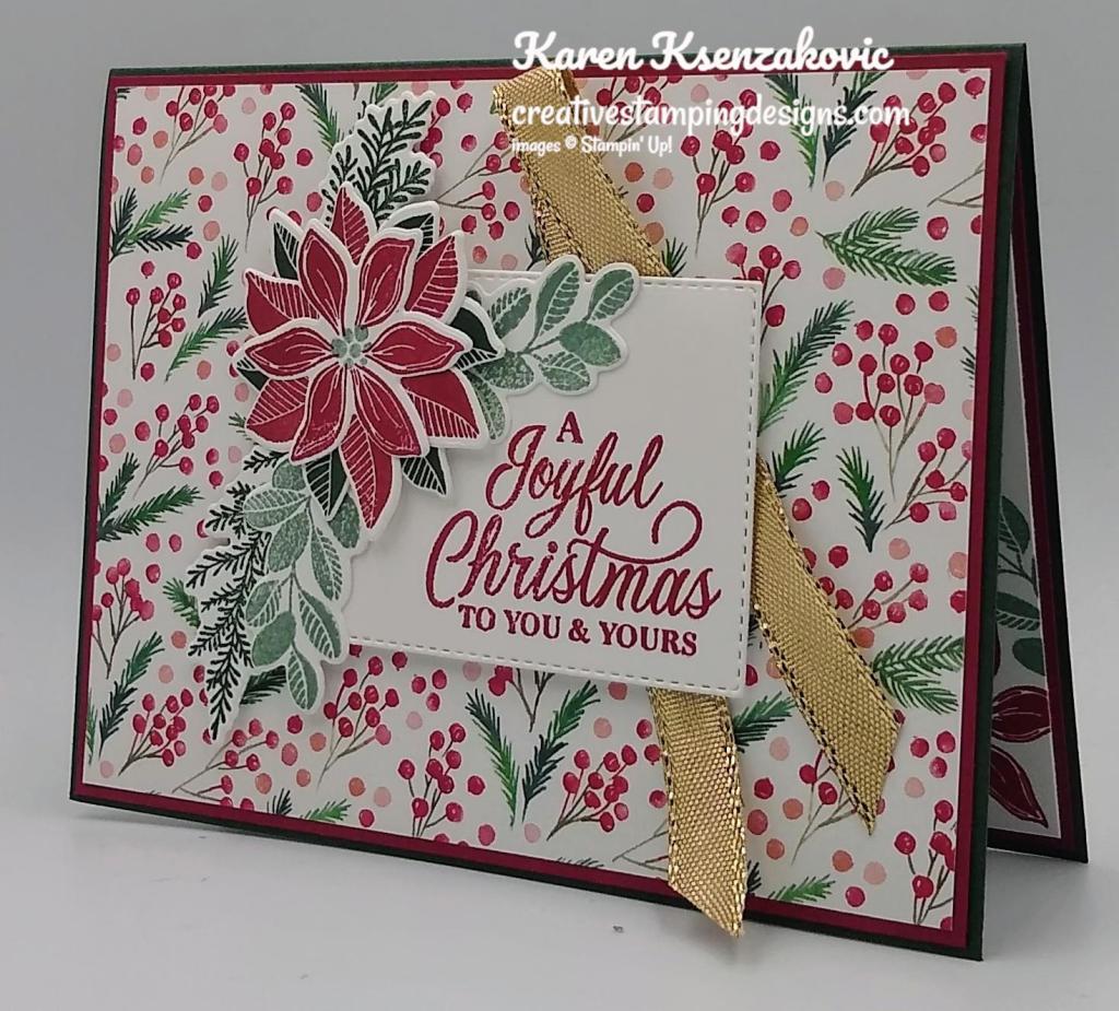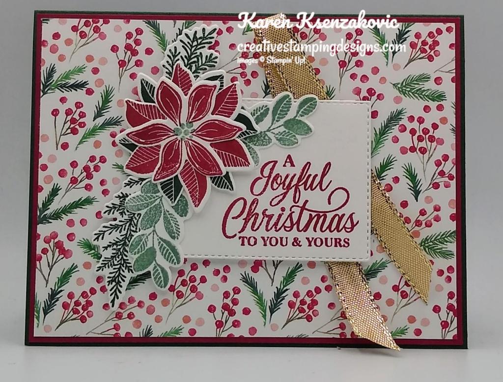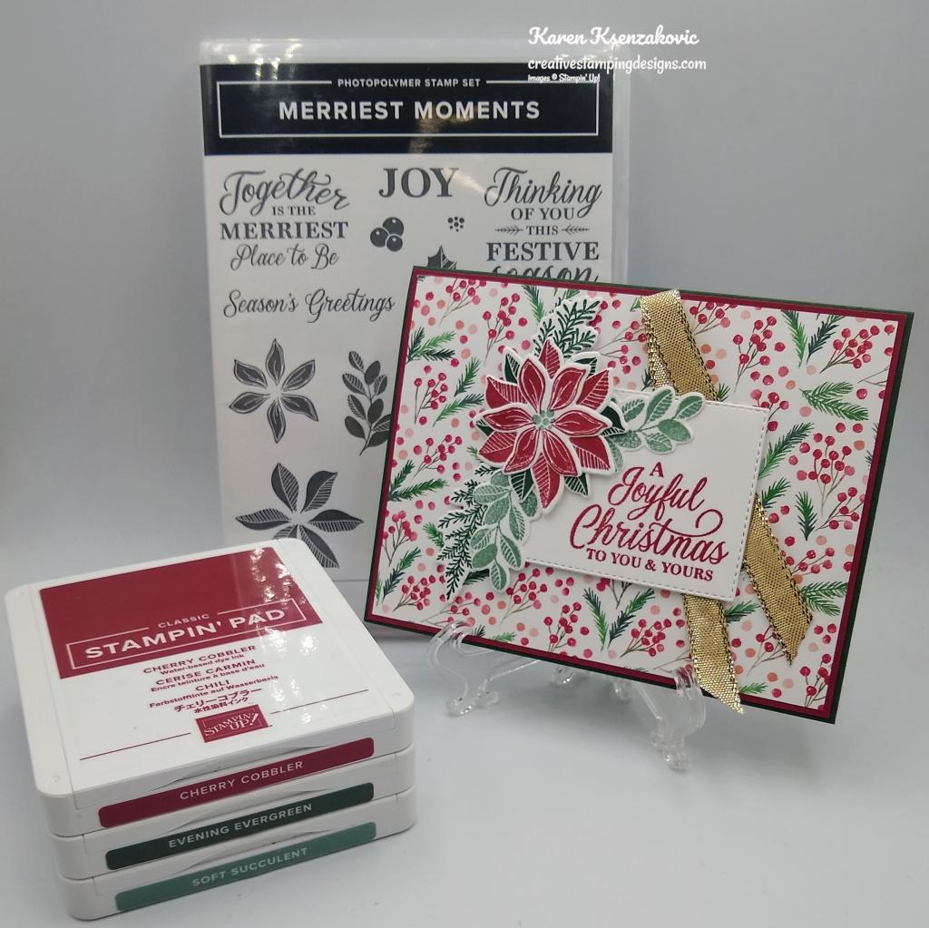 I used the Stampin’ Up! Merriest Moments Photopolymer Stamp Set along with the Stampin’ Up! Brightest Glow Cling Stamp Set, Merriest Frames Dies and Organic Beauty Dies for my card today.