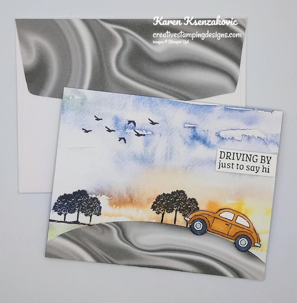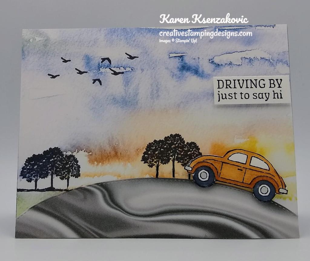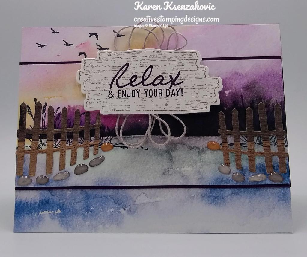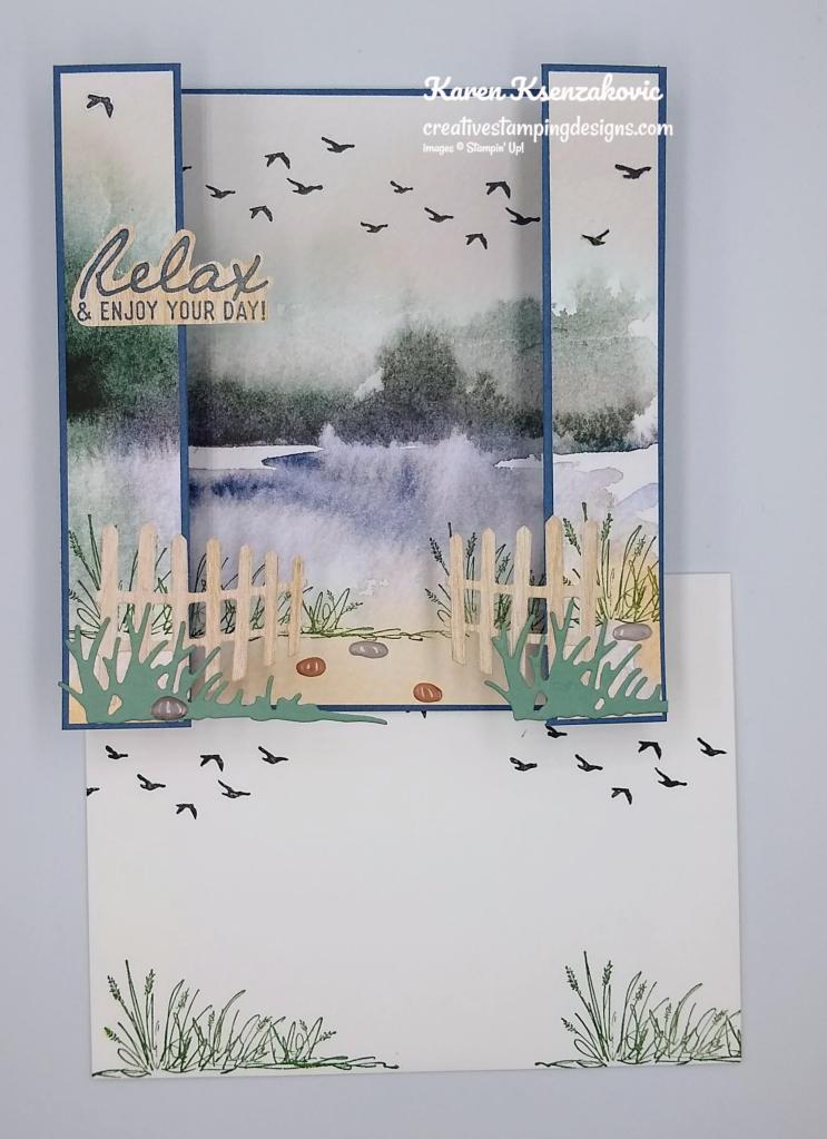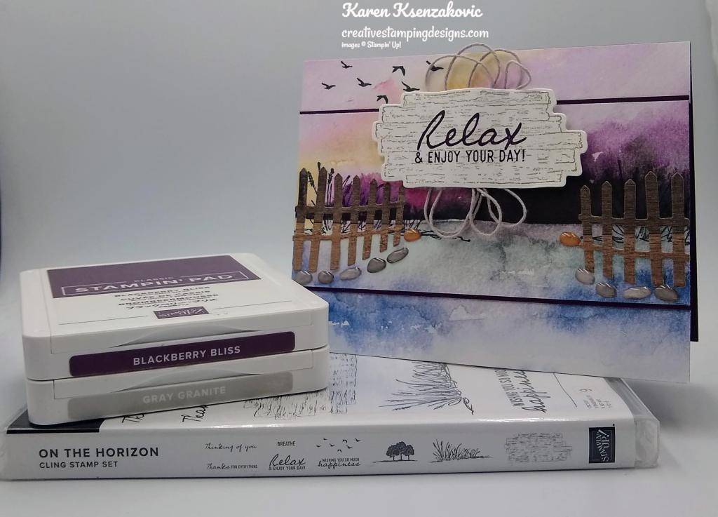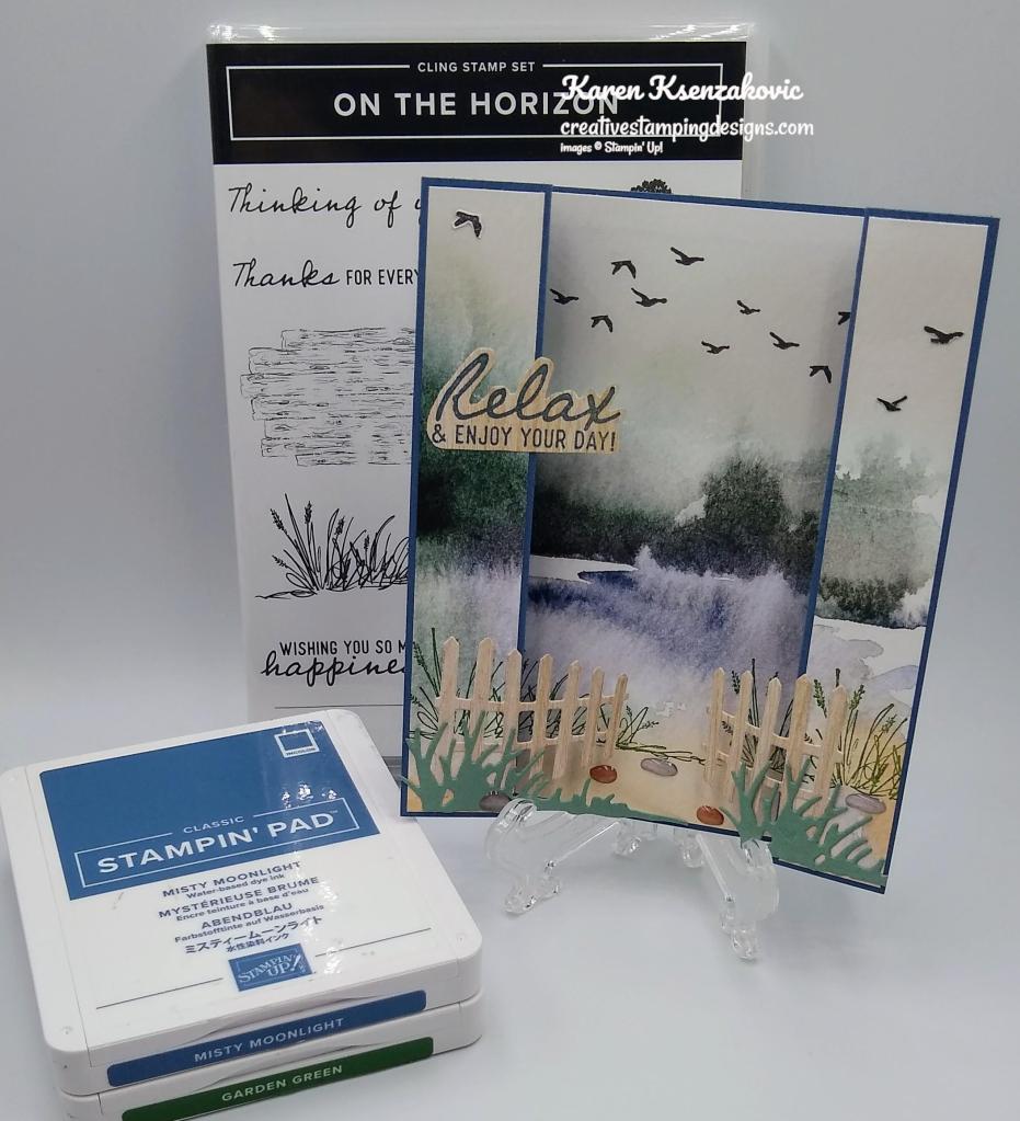 I used the Stampin’ Up! Paradise Palms Bundle along with the New Horizons 6 X 6 Designer Series Paper for my card today.
