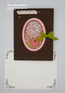- Blackberry Bliss Cardstock 1″ X 5 1/4″ (card front panel)4 1/8″ X 5 3/8″ (inner liner mat)