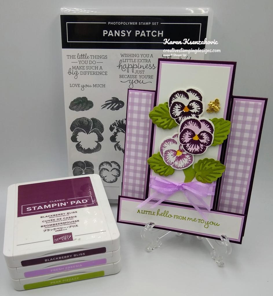 I used the Stampin’ Up! Hello Ladybug Photopolymer Stamp Set along with the Pansy Petals Designer Series Paper for my card today.