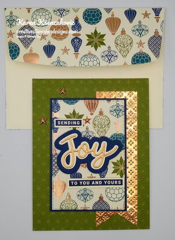 I adhered a panel of the Brightly Gleaming Specialty DSP to the envelope flap.